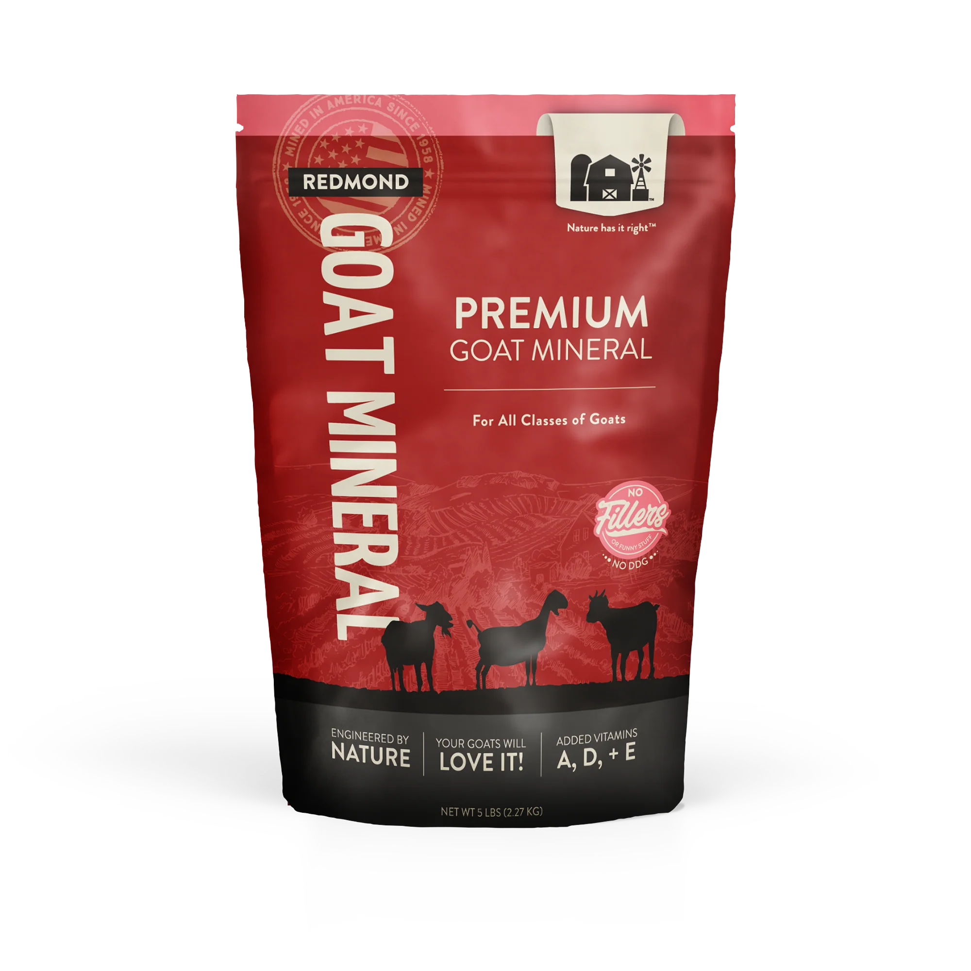 At Redmond Agriculture, we understand that when your animals feel good, you feel good. That’s why we offer our Goat Mineral Mix—a premium sea salt with naturally occurring essential trace minerals. This mix is also fortified with selenium (30 ppm), manganese, cobalt, copper, iodine, zinc and vitamins A, D and E. We work with nature to supply your flock the essential minerals they crave. Balance and proportion are key. Your animals do not crave the processed grain byproducts or molasses meant to entice consumption found in other products. Redmond Goat Mineral delivers minerals just as Nature intended. They love it, and you will love the results; and you don’t have to pay for fillers that your goats don’t need.